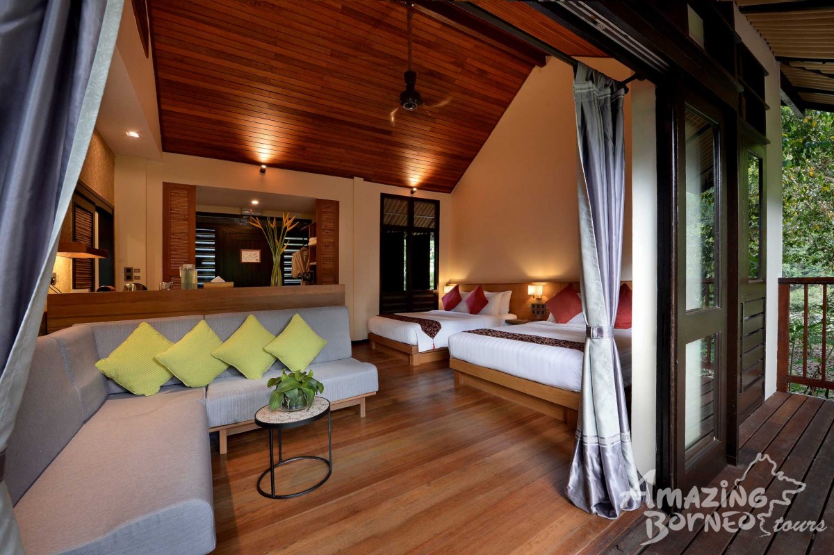 The award-winning Borneo Rainforest Lodge is beautifully situated along the Danum River within Sabah's largest protected Lowland Rainforest, the Danum Valley Conservation Area. This 43,800-hectare pristine rainforest is 130 million years old and home to an extraordinary variety of wildlife, including over 340 bird species, 124 mammals, 72 reptiles, 56 amphibians, and 200 plant species per hectare. The lodge, recognized for its excellence in eco-tourism, offers 31 individual chalets with fans and en-suite bathrooms, accommodating up to 60 guests on a full-board basis, ensuring an intimate and exclusive experience.
