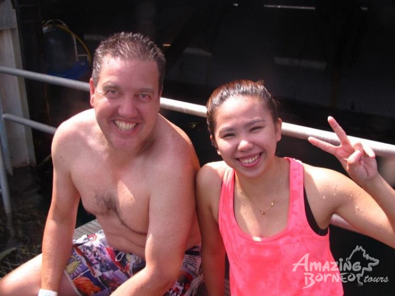 実習生である私は2015年7月6日に初めてボルネオ・リーフ・ワールドへ行きました。 8時半にガイドのベルとともにドライバーのズルと合流しました。 そして8時45分にガヤ・センター・ホテルへオーストラリアからの旅行者グラハムさんを迎えに行きました。 9時にスピードボートでボルネオ・リーフ・ワールドへ向けて出発しました。 ポンツーンまでおよそ30分かかりました。 到着後すぐに、朝食を給されました。
