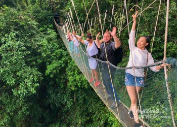 Upon pick up from the hotel lobby, you will be whooshed straight into Sabah's lush countryside. The first stop will be Tamparuli Town for a walk on the famous “Jambatan Tamparuli” suspension bridge and soak up the small-town charm.
