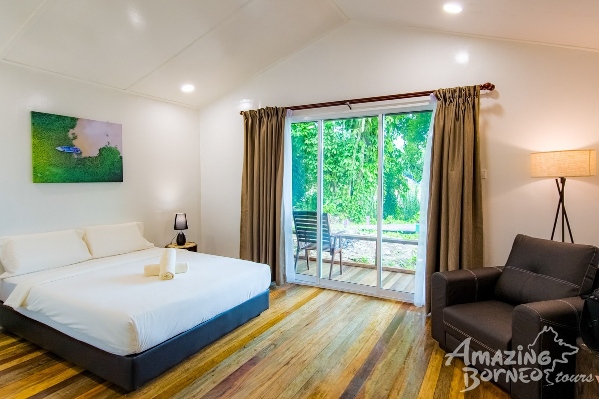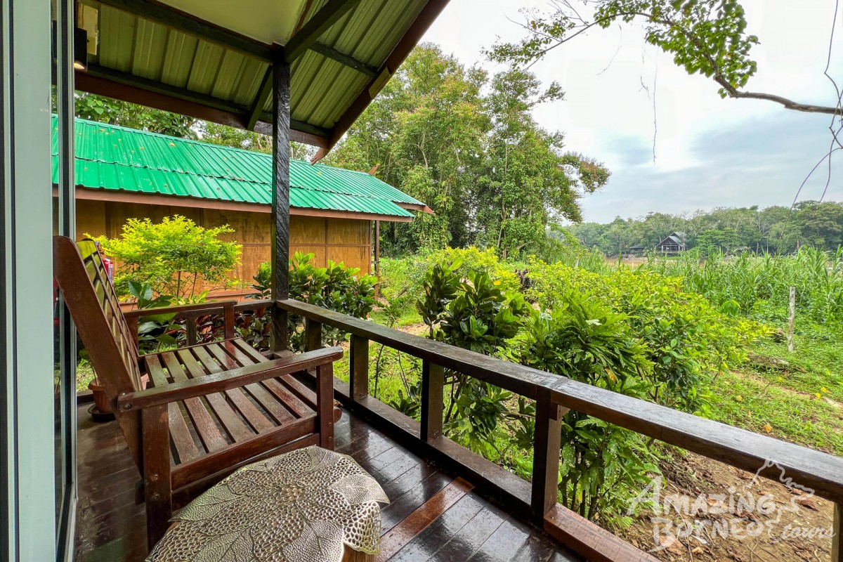 12:30 Hrs: Enjoy a local lunch at the Mango Garden Restaurant, set amidst tropical greenery. After lunch, drive 2 hours through small towns, villages, and oil palm plantations before arriving at Kampung Bilit. Cross the river by boat to Tanini Kinabatangan Lodge for welcome drinks, orientation, and check-in.