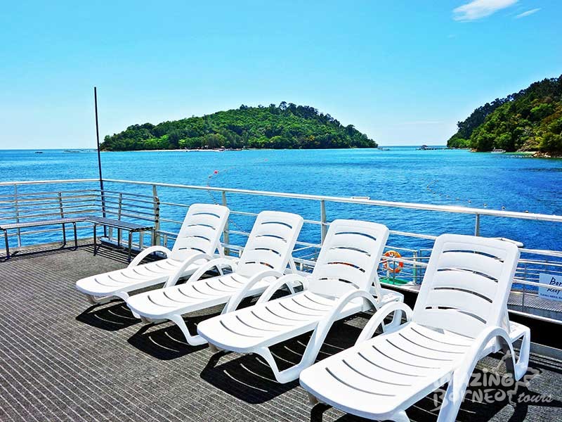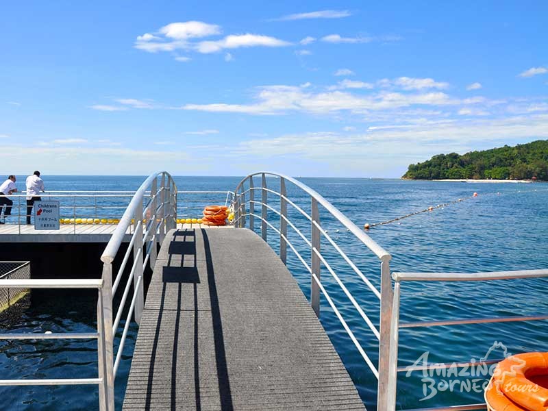 Borneo Reef World, a Reef Activity Pontoon, is the largest in South East Asia and is equally modern as the ones operated at the Great Barrier Reef, Australia. It measures 37.5m Length by 24.5m Width by 11.8m Height and is built with high marine grade rust-proof aluminium. Its modern, large, spacious , stable and luxurious Reef Activity Platform , provides great experiences in all weather conditions. The 2 level pontoon include the unique Underwater Observatory, carpeted walkways, sunbathing deck, freshwater showers, shaded seating areas, children's pool and comfortable dining area. It also houses the 5 sea level platforms to launch the various water activities.