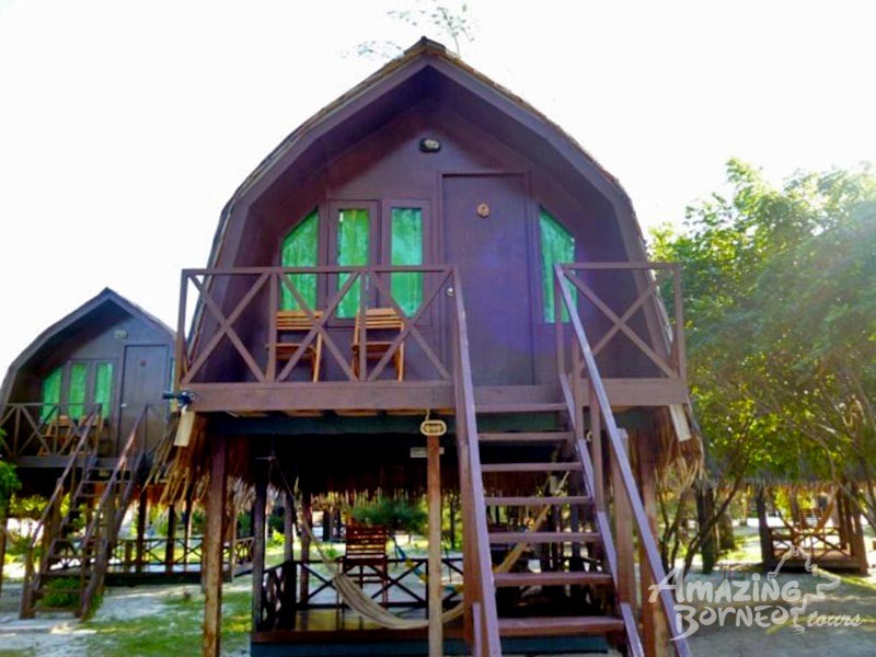 Mari Mari Backpackers Lodge is located at Pulau Mantanani Besar. There are two types of accommodation here. The first is the charming "Sulap"-style (Hut or Cabin) huts which are made of very simple wooden village type house built on stilts and have teak wood floors. Below each "Sulap" is a deck area furnished with hammock between the stilts. There is a staircase to climb around 2 meters high to go to the room. Guests are provided with mattress on the floor, blanket and a pillow each. Each "Sulap" is equipped with lighting and socket points, and wall fan. For all Twin-Share Rooms, it comes with attached bathroom and hot water shower is available during the island's regular electricity supply time, i.e. 1800hrs to 0600hrs.