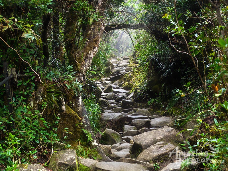 The air is cool and moist as you ease into the Upper Montane Forest at 1,900m. Trees are stunted (less than 6m tall) with trunks and branches (as well as leaves!) are draped with lichens, mosses and liverworts. Thick mists swirl and wander with the winds of the montane forest but flamboyant species of Rhododendrons with colors of red, pink, yellow and orange stand out in this zone, where it predominates.