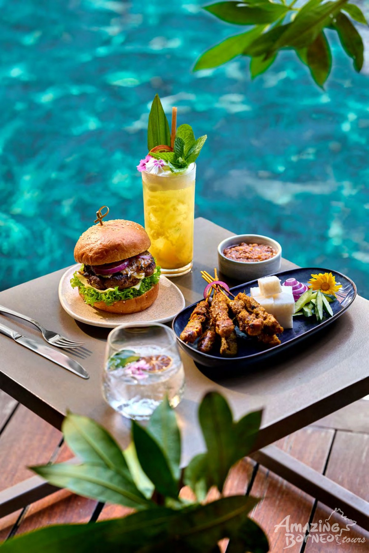 Bayu offers light meals, snacks, and refreshing drinks by the pool. It is an ideal spot to unwind during the day or enjoy sunset views over the Sandakan waterfront.