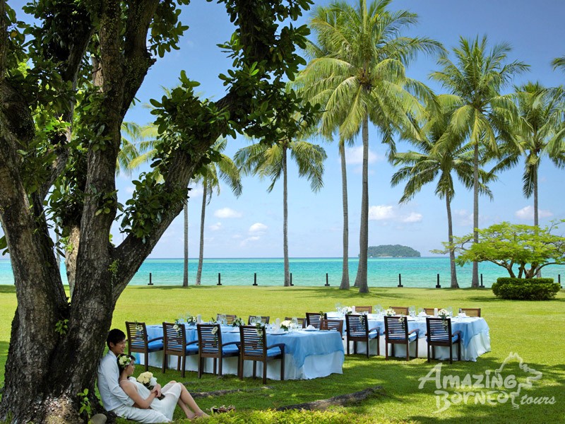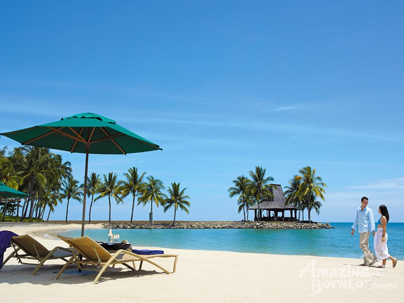 - Kopivosian! Welcome to Kota Kinabalu! On arrival at Kota Kinabalu International Airport, you will be transferred to Shangri-La Tanjung Aru Resort & Spa, a perfect tropical getaway, a luxurious tranquil retreat just a short drive from the city. Check in as sophistication surrounds you in a beautifully decorated room inspired by Borneo’s rich cultural heritage. This afternoon is yours to relax and settle in.