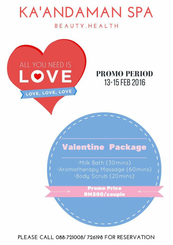 This Valentine's Day, don't forget to book a pampering treatment for you and yours. From the 13th to the 15th of February, enjoy a special Valentine Package worth RM300 that will give you and your special one all the tender loving care you need. This year, say 'I love you' with Ka'andaman Spa!