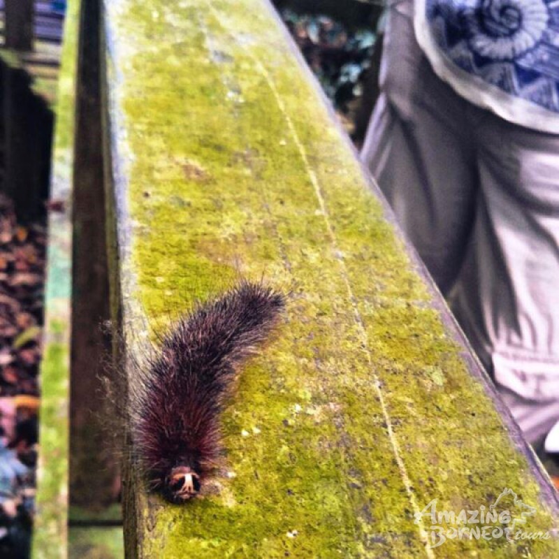 Cute caterpillar on the boardwalk banister